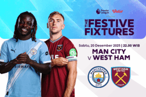 Pertandingan Premier League 2025/26 pekan ini akan mempertemukan Manchester City vs West Ham, laga yang digelar pada Sabtu (20/12/2025) pukul 22.00 WIB dan dapat disaksikan melalui layanan siaran langsung Premier League di OTT Vidio, official broadcaster Premier League di Indonesia.