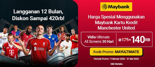 Berlangganan Paket Ultimate All Screen 30 Hari dengan harga spesial Rp140.000 khusus menggunakan Maybank Kartu Kredit Manchester United. Nikmati perpanjangan otomatis dengan harga diskon selama 11 bulan berikutnya.